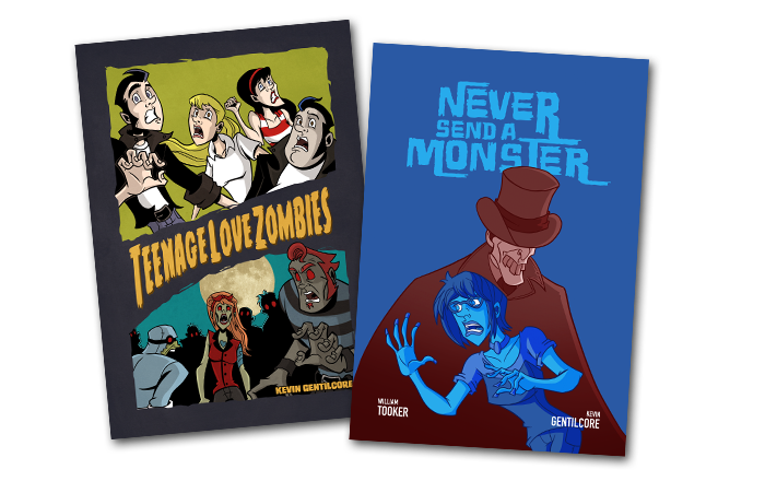 KEVIN: If you like an artist or writer, buy something from them. It’s usually cheaper than a specialty coffee drink at Starbucks and much more satisfying, for you both. We often give our new books away for short periods of time so the best way to get free comics from us is to sign up for our newsletter. We’re also running a Kickstarter that is set to end on Halloween. We have two new, all-ages friend horror graphic novels up along with other goodies. We could use all the help we can get!